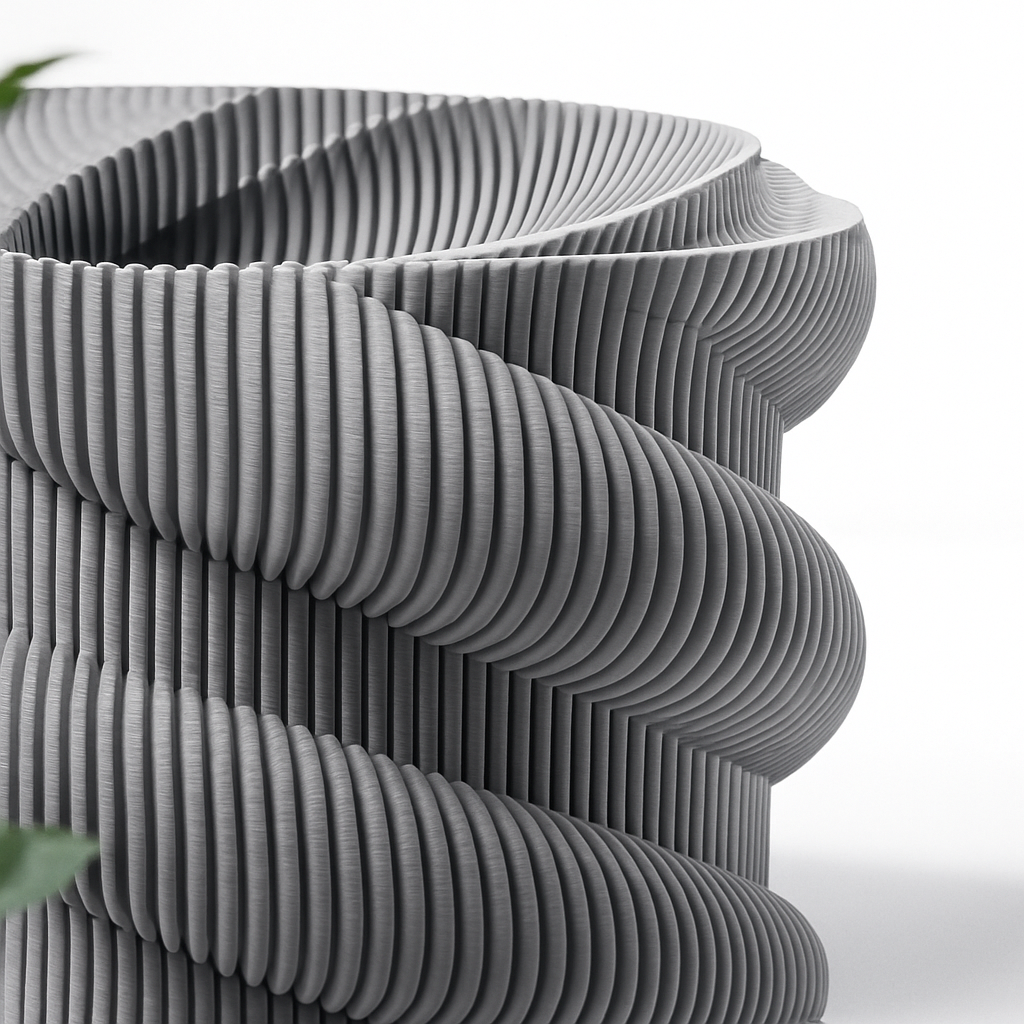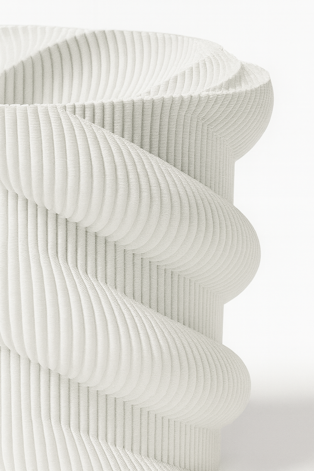 Veent Vase is a modern sculptural piece designed to bring clean lines, texture, and quiet presence into your space. Its layered form creates subtle depth and shadow, making it as much a design object as it is a functional vessel.